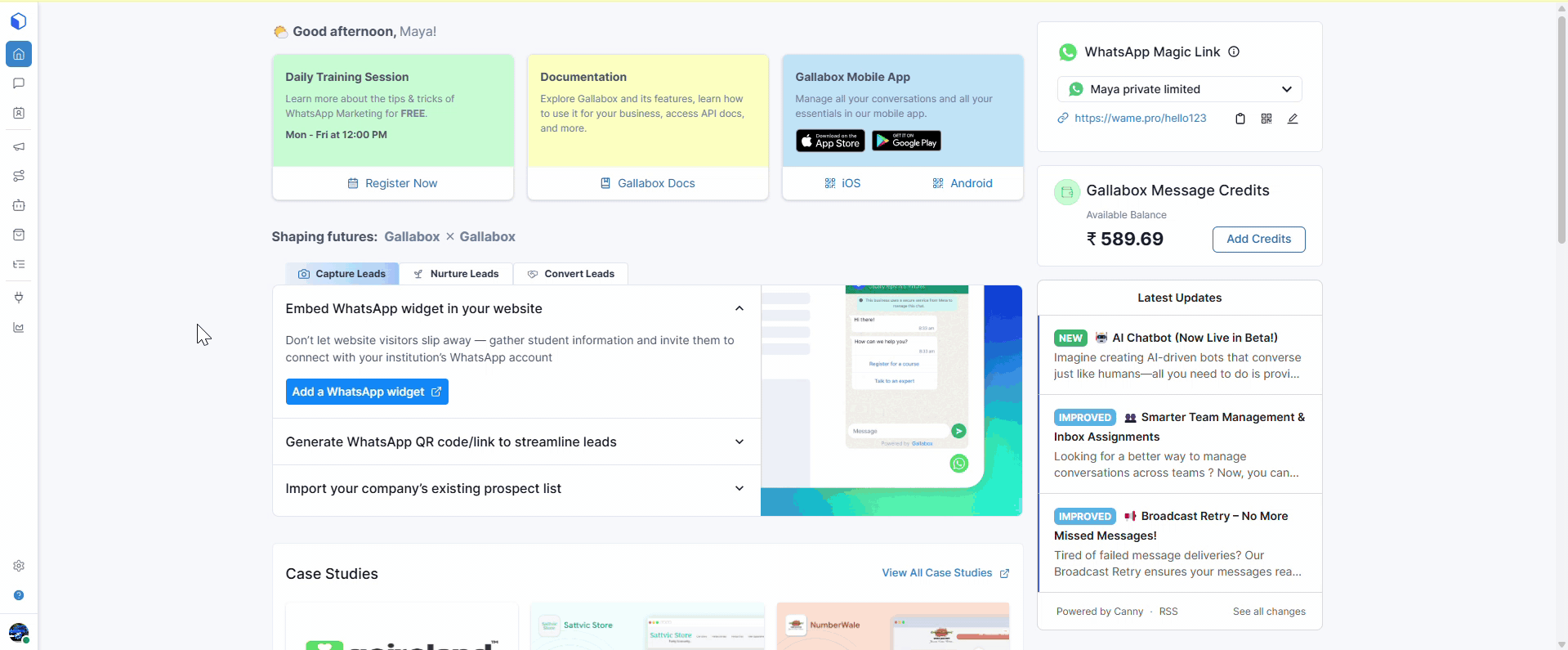 CAPI (Conversions API) is a server-side integration that sends conversion events — such as **Lead** and **Purchase** — from Gallabox back to Meta. This is how Meta learns who your best customers are: not just who clicked your ad, but who actually started a conversation, became a lead, or made a purchase. CAPI works for ads running on both **Facebook and Instagram**.