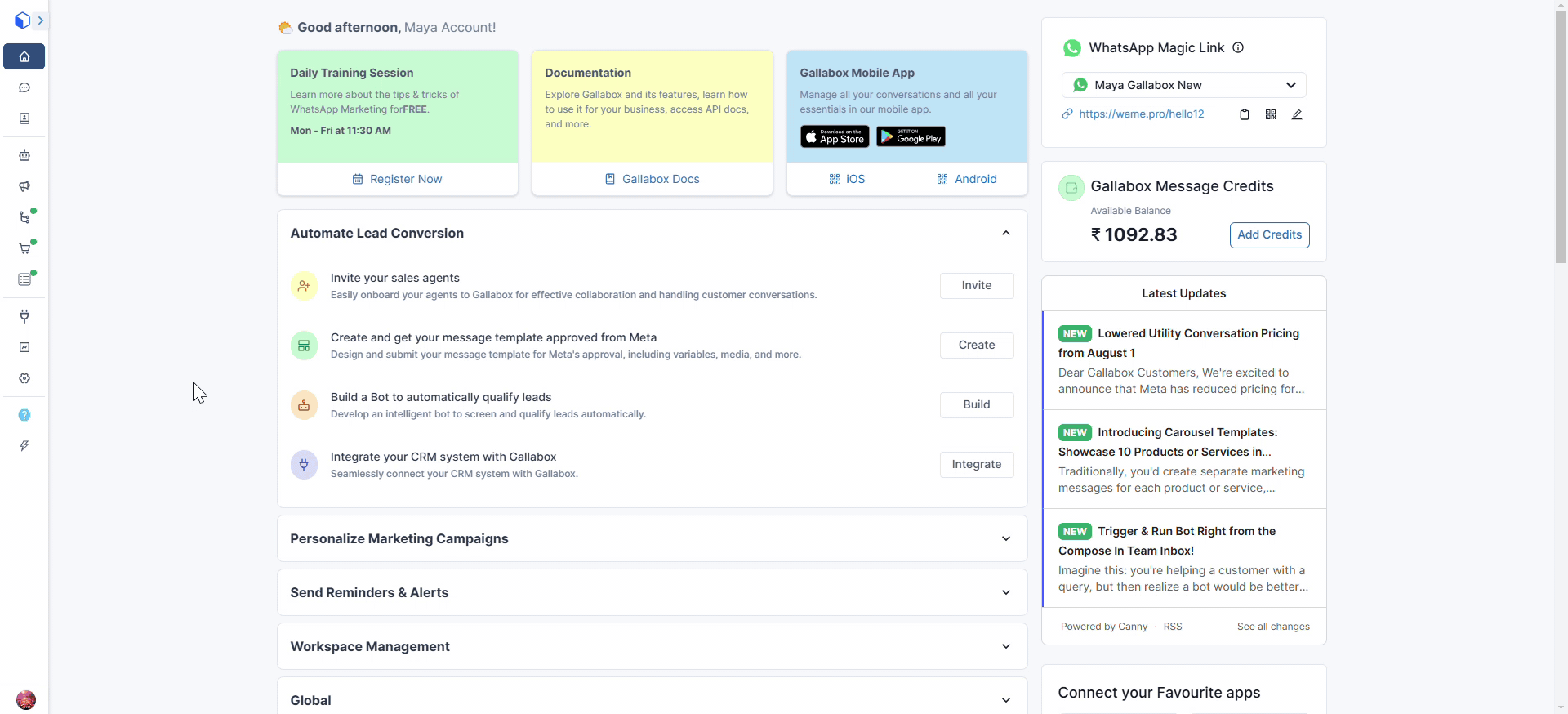Go to WhatsApp Templates under Settings in Gallabox left navigation. Click on "+Create New Template".
