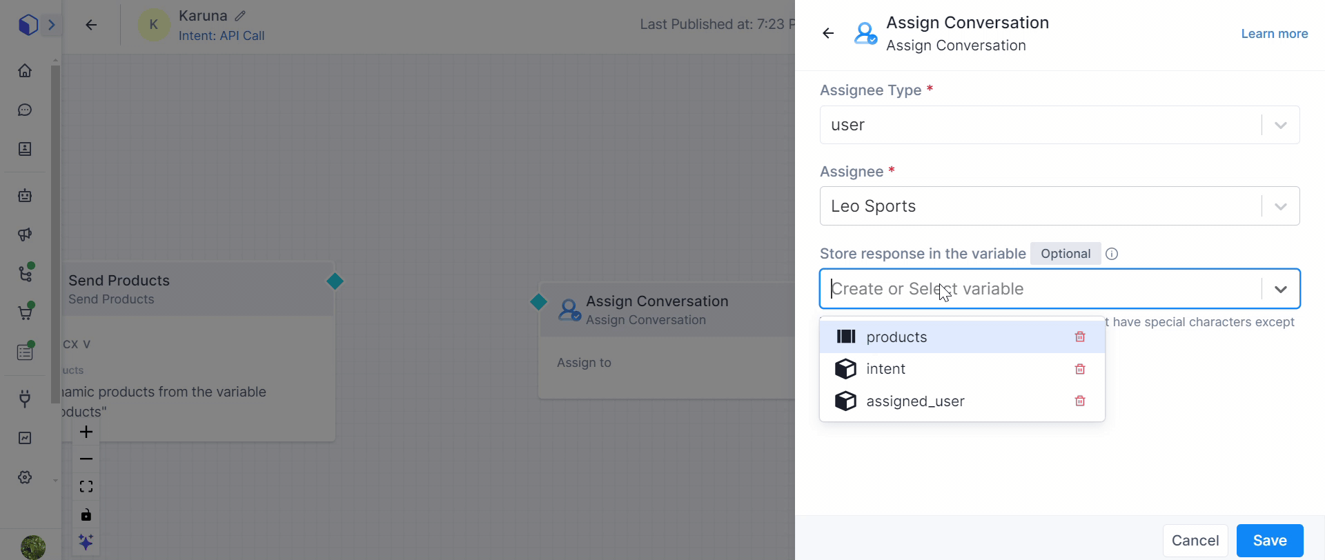 The Store Variable feature improves how we keep track of who is handling each conversation. It does this by letting us save information about the person assigned to a conversation right in the Assignment section. This makes it easier to see who is in charge of a conversation and helps with creating reports.
