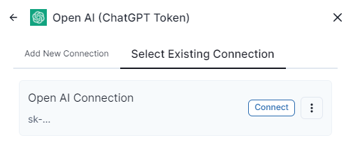 4. If the Open AI connection has already created, go to Select Existing Connection and click on Connect.&#x20;