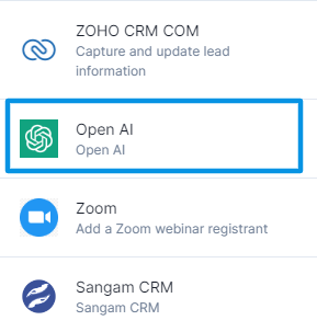1. Choose the connector - Open AI from the list of connectors.&#x20;