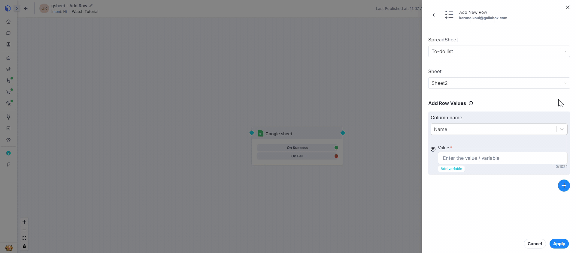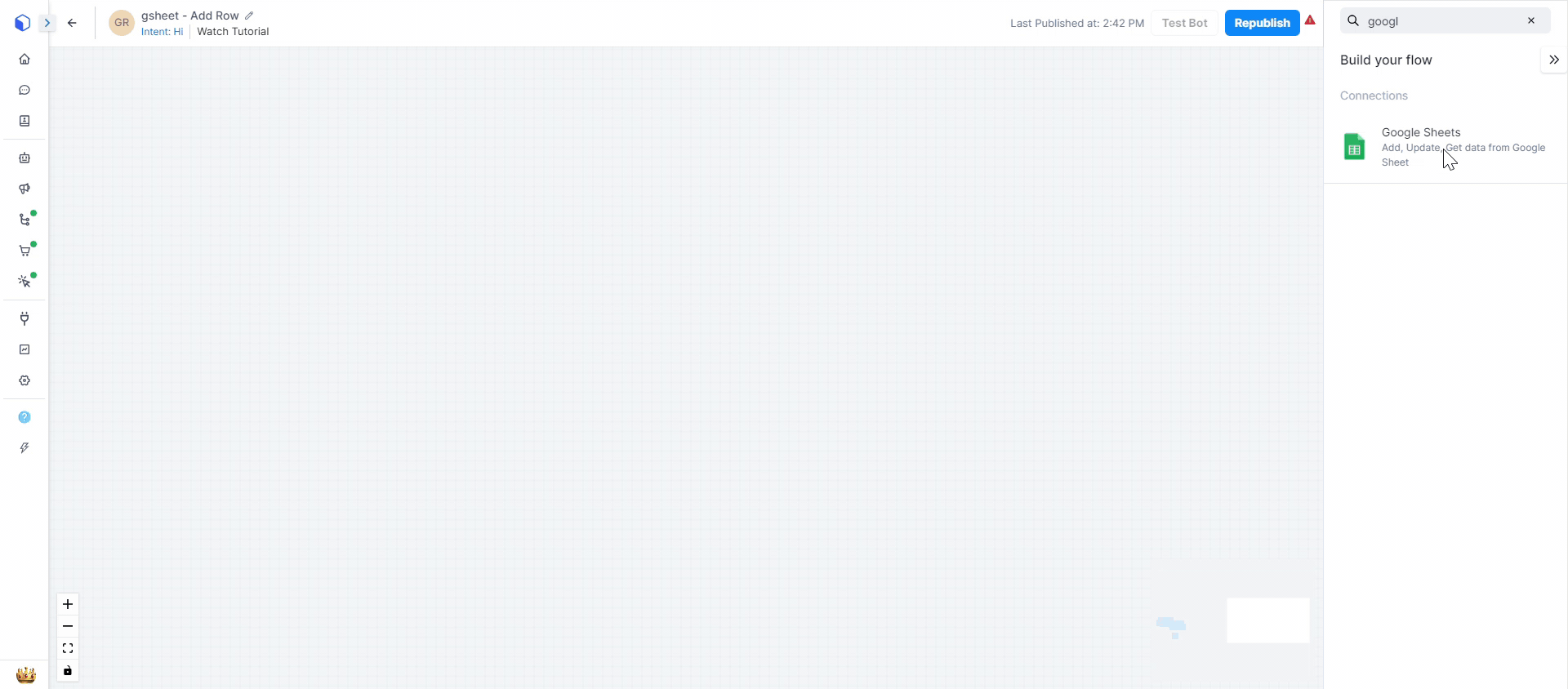 With the Google Sheet connector seamlessly integrated into your chat-flow, managing and updating customer data becomes a breeze. Whether you're adding new rows, updating existing data, or fetching specific values, follow our step-by-step instructions to optimize your workflow and enhance data-driven decision-making.