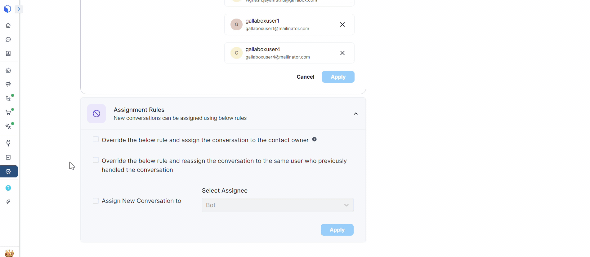 2. Go to Assignments and scroll down to [Assignment Rules](https://docs.gallabox.com/whatsapp-channel/assignments-rules).&#x20;