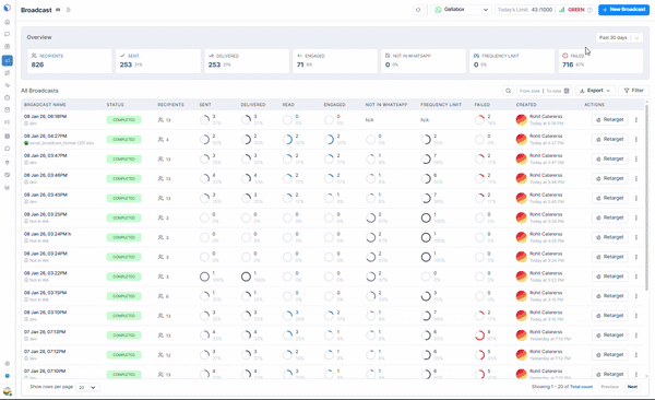 If a broadcast has **NA** shown in **Not in Whatsapp or Frequency Limit,** it is because that particular broadcast was sent before **Broadcast Smart Filter** was live.