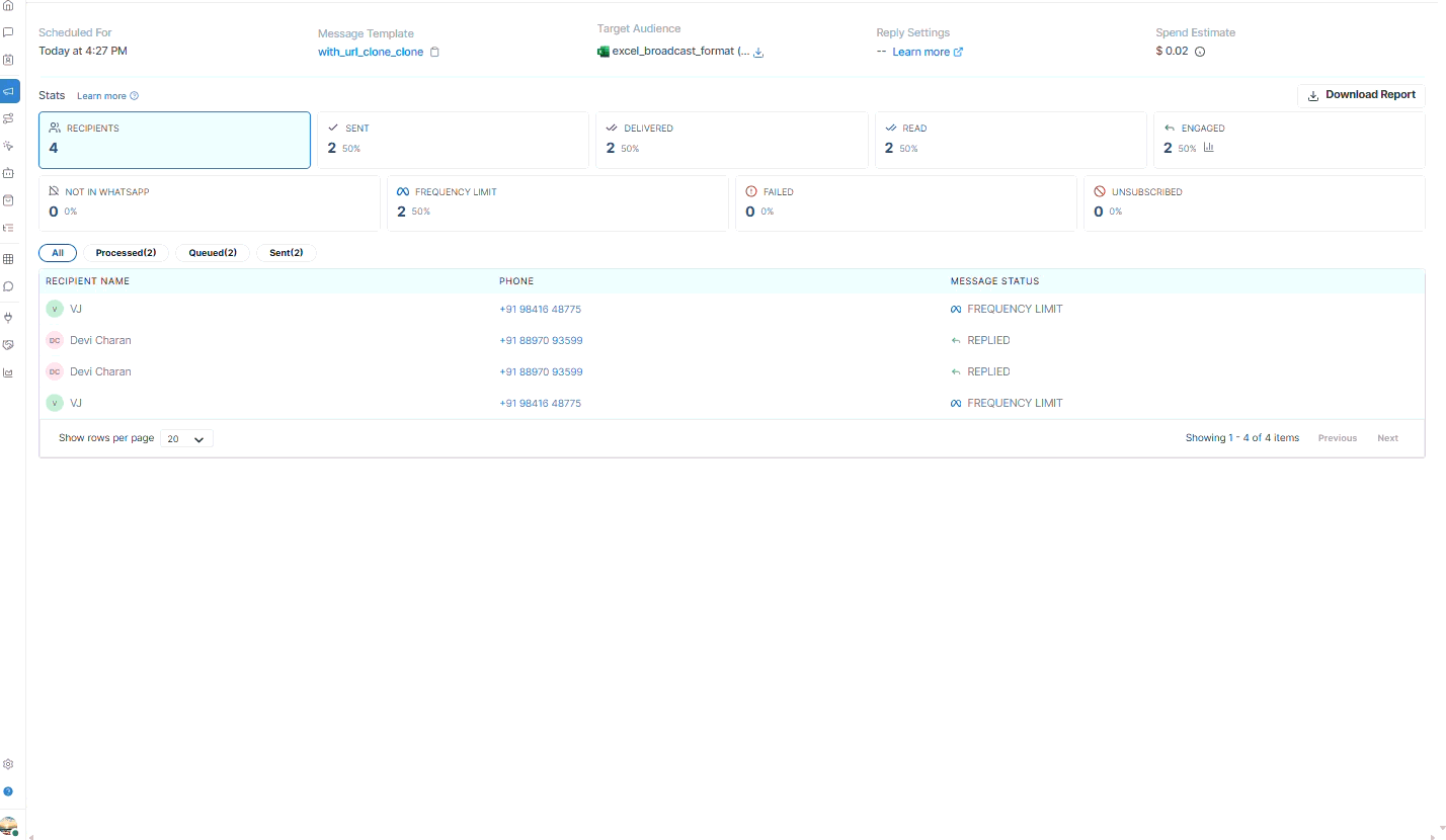 You can also see how many message credits were used in the broadcast campaign under Spend Estimate. &#x20;