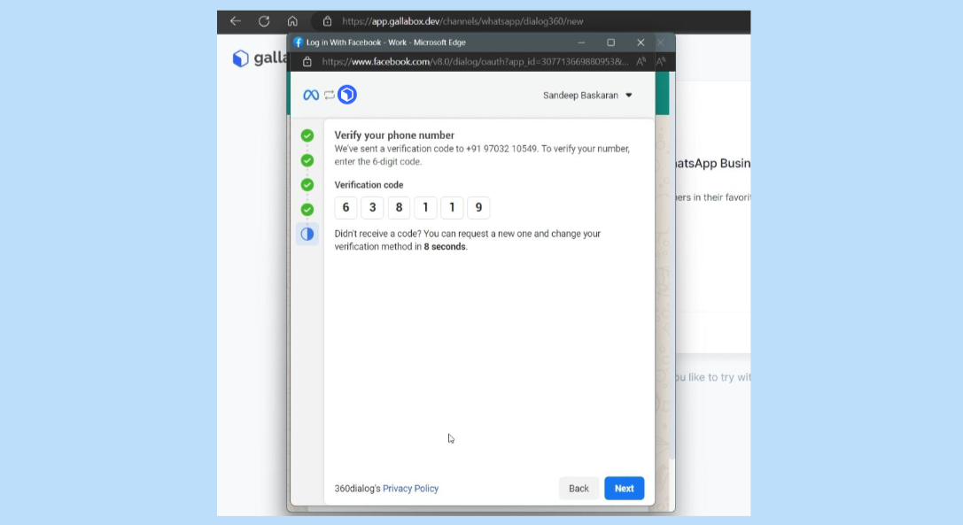 8. Once your WhatsApp Business instance is ready, proceed to authorize Gallabox for integration. This step enables seamless communication between your WhatsApp Channel and Gallabox.