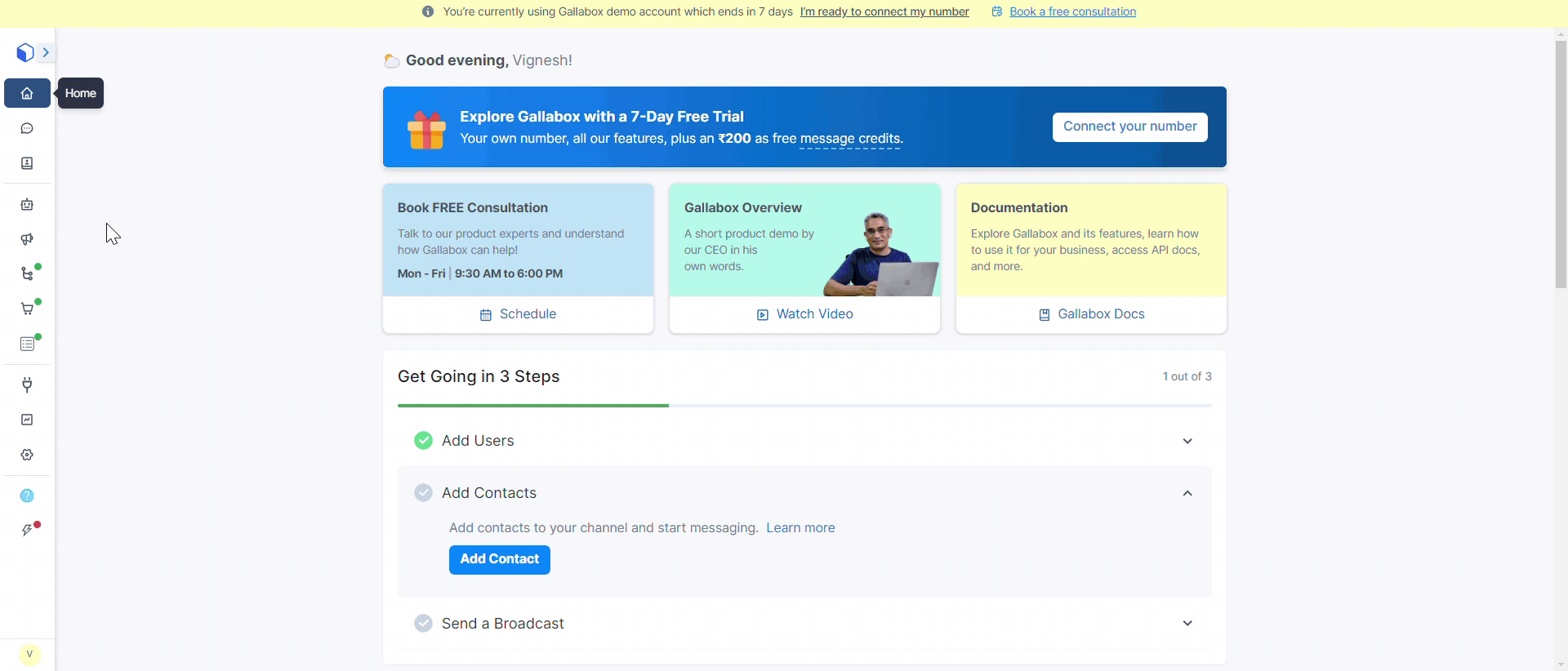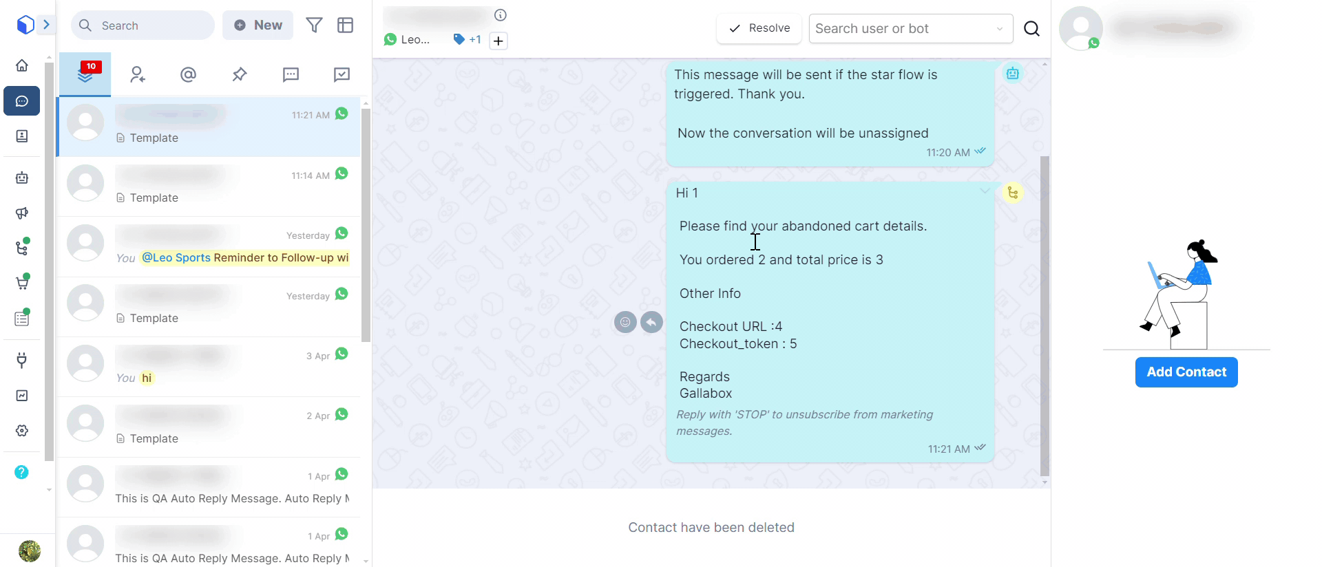 When a customer starts a chat, Gallabox automatically saves their mobile number and name in your account. This makes managing contacts easier and keeps your list current without manual updates.
