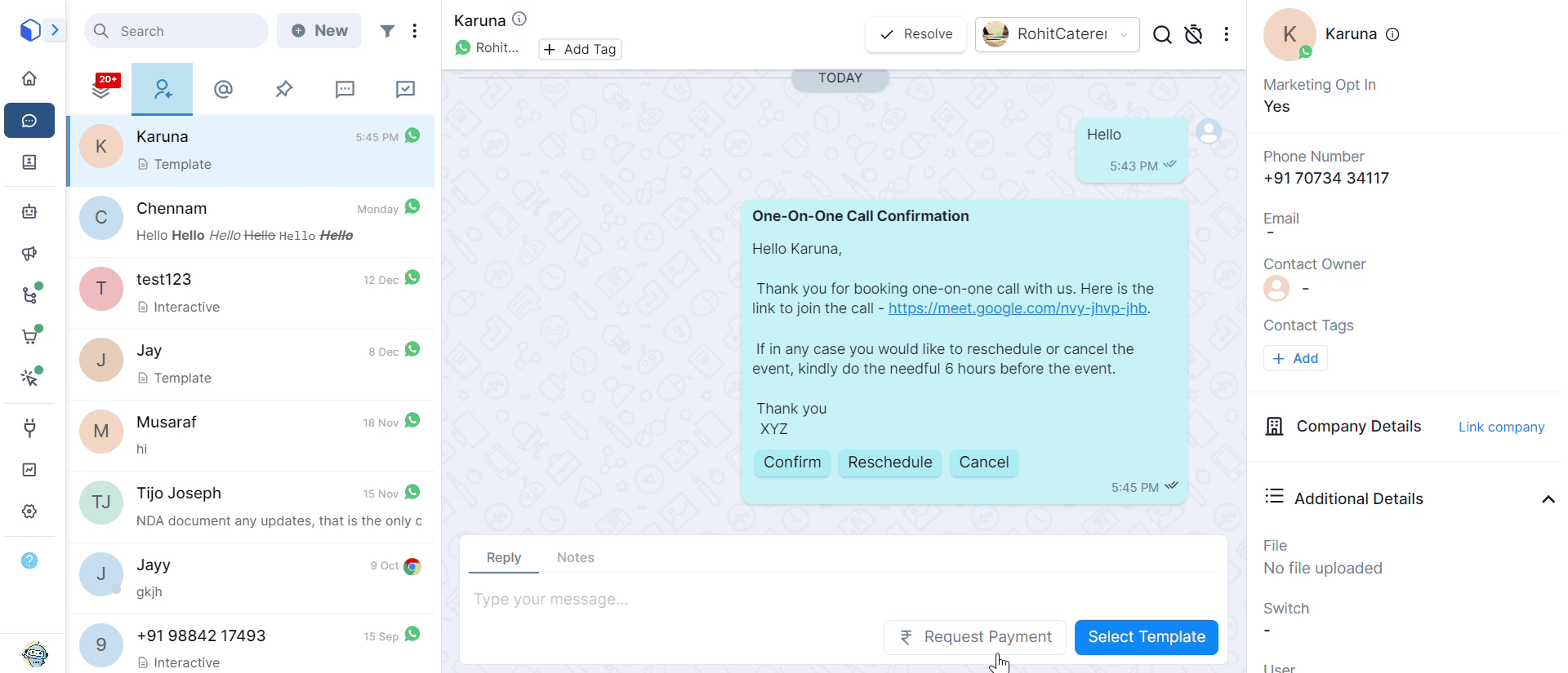 1. Go to **Conversations** and choose the contact you would like to send the Payment link to.