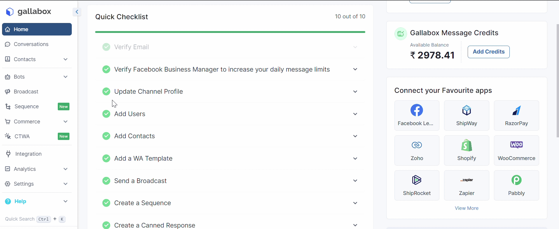 If you require more assistance on message credits and it's usage, feel free to reach out to our support team on our dedicated support number or by raising a ticket in your Gallabox account. <br>