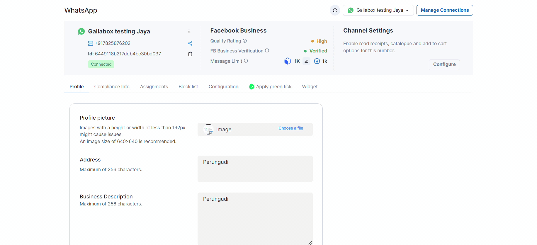 <figure><img src="https://3137140735-files.gitbook.io/~/files/v0/b/gitbook-x-prod.appspot.com/o/spaces%2FZcl3T6ePz95GpzjAeOLW%2Fuploads%2FDkzbc0t6nRD2KOxtoSKi%2FWhatsApp%20Channel%20in%20Gallabox.gif?alt=media&#x26;token=6e26f8fd-8f95-43a1-9658-4e2c999b1e72" alt=""><figcaption></figcaption></figure>