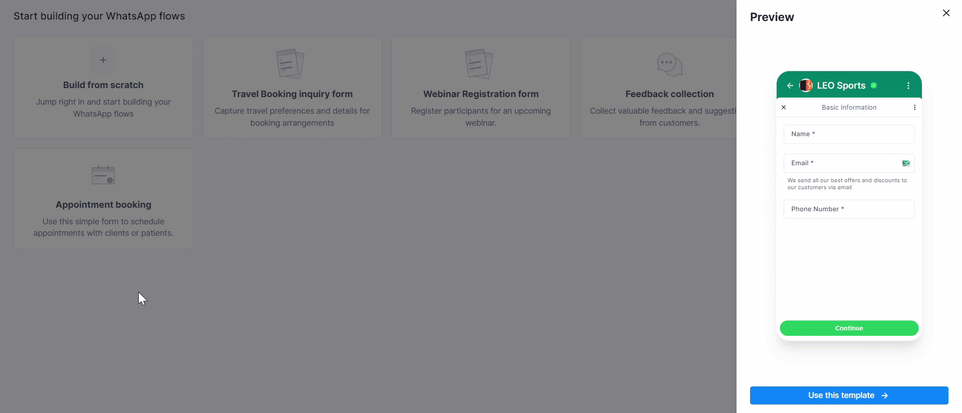 You can preview the how WhatsApp Flow will look to your customers on the right hand side of the window before using any Template.