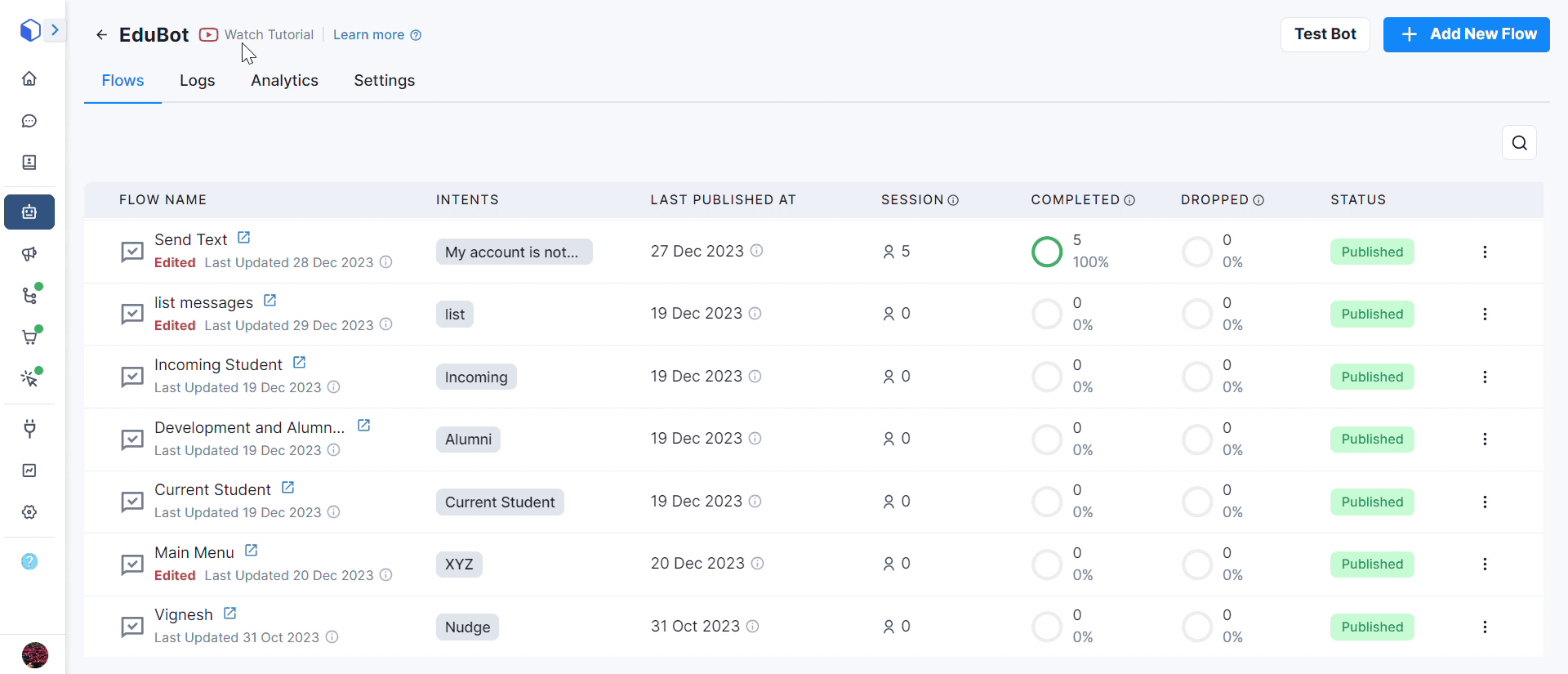 Congratulations! You've successfully created a flow within your bot. Dive into the bot builder, explore the variety of Bot Cards and tailor your flows to align with your company's goals. Keep users engaged by employing the [nudge feature](#enable-nudge-before-dropping-user-off-the-bot) strategically, ensuring a smoother and more interactive chat-bot experience.