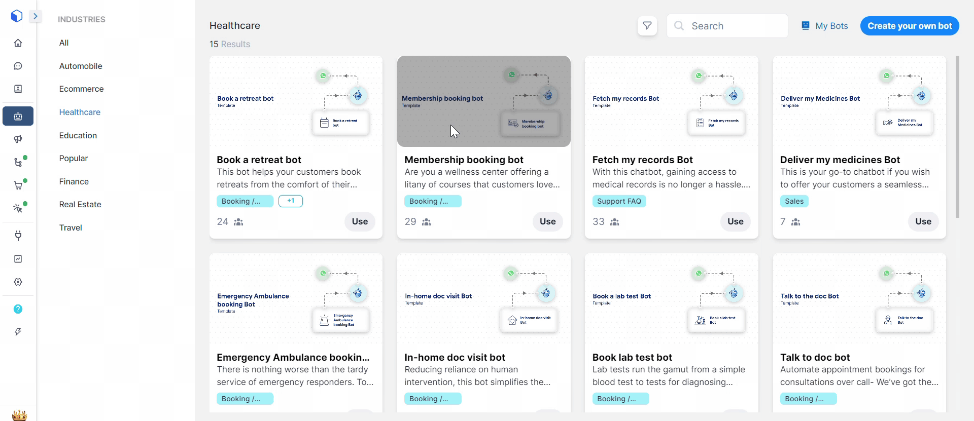 <figure><img src="https://3137140735-files.gitbook.io/~/files/v0/b/gitbook-x-prod.appspot.com/o/spaces%2FZcl3T6ePz95GpzjAeOLW%2Fuploads%2Fvpdw8AdT09vD4I7uL960%2FBot_templates.gif?alt=media&#x26;token=85964d20-7339-4c04-a71b-5d9ab46e8ca2" alt=""><figcaption></figcaption></figure>